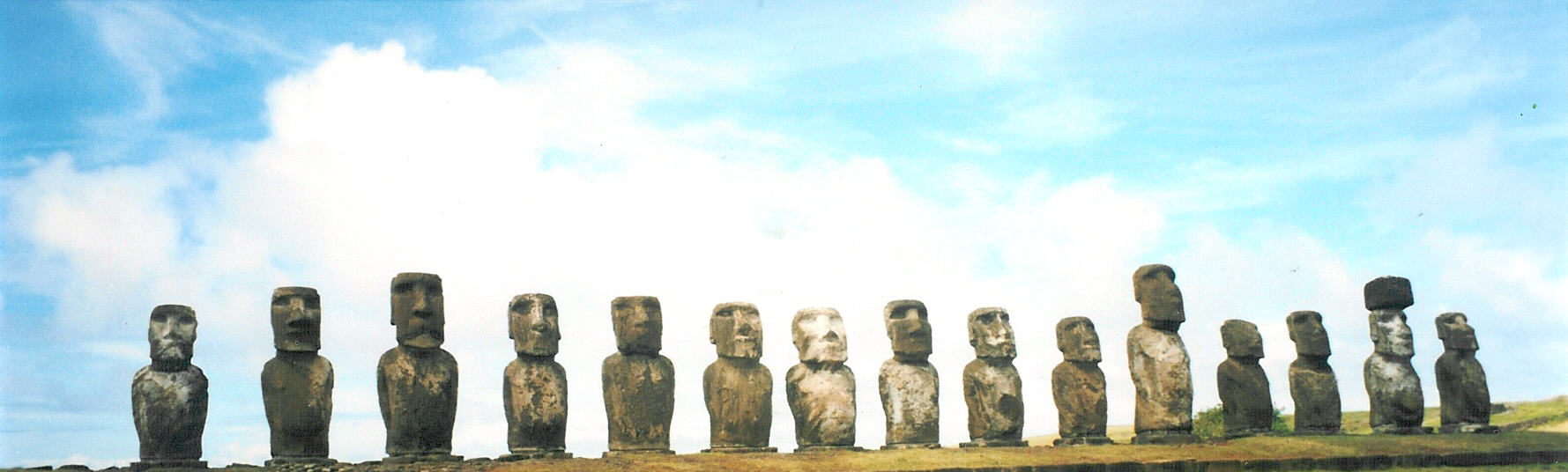 Statue at Rano Raraku (Tongariki can be seen in the distance on the left)